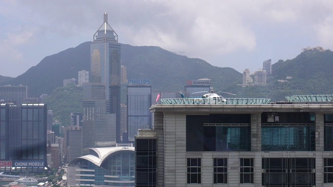 香港の老舗高級ホテル「ペニンシュラ」の屋上にはヘリポートがあって、遊覧飛行を良くしています。